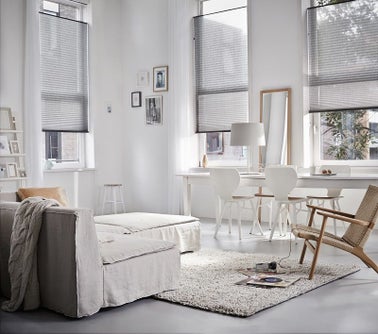 Luxaflex® biedt plissés aan in drie verschillende stoffen: de standaard collectie, de Topar® en de Dustblock® .